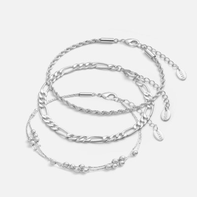 - تفاصيل الأساور: أساور بتصميم أنيق باللون الفضي .